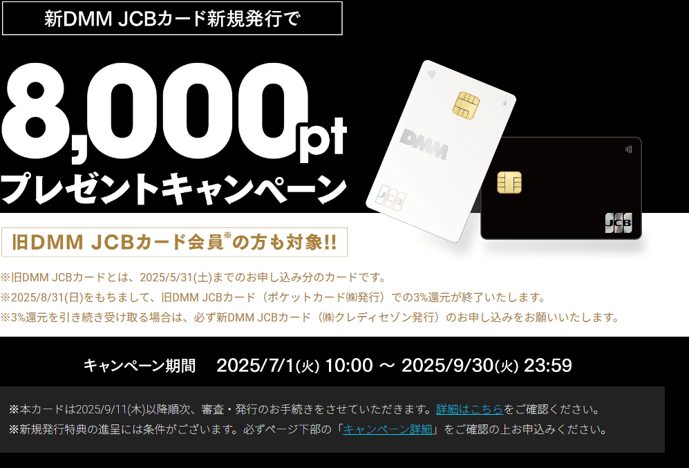 DMM内だと3%ポイントがつくという破格の還元率を誇っていたDMMJCBカードですが、2025年9月に生まれ変わるらしいです。